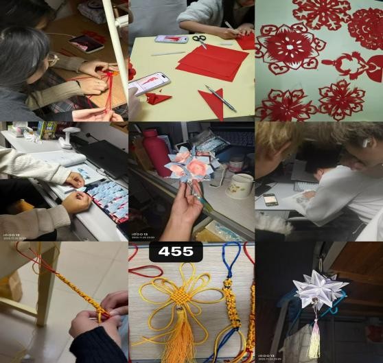 活动中,各宿舍团队化身“创意工坊”,将全会精神融入实践创作的每一个环节。手工创作现场,同学们巧用废旧纸箱、布料、环保材料,经分工协作、奇思妙想,制作出蕴含红色文化、低碳理念的主题手作:各式各样的窗花、拼接而成的主题摆件、融入传统技艺的装饰等等,每一件作品都凝聚着青年学子对新时代的理解与憧憬,展现了将理论感悟转化为艺术表达的创新能力。