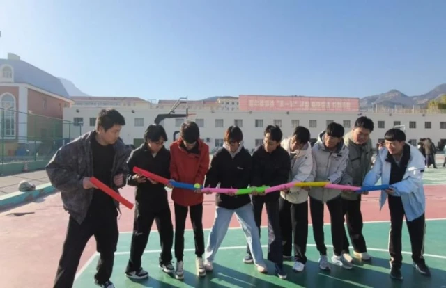 “数字抱团”作为开场,迅速点燃了现场气氛。随着音乐响起,同学们在篮球场上自由走动,当主持人喊出一个数字时,大家需要快速找到相应数量的伙伴抱在一起。这个游戏不仅考验了同学们的反应能力,更让平日里不太熟悉的同学有了第一次亲密接触的机会。“珠行万里”环节更是将团队协作推向高潮。同学们需要用U型槽将乒乓球从起点运送到终点,期间不能用手接触球,也不能让球掉落。这个看似简单的任务,却需要每个人都全神贯注,准确判断球的滚动速度和方向,稍有不慎就会前功尽弃。经过几轮尝试和调整,各个小组都找到了最佳的配合方式,顺利完成了任务。最后的“绑腿竞走”游戏将活动气氛推向顶点。六人一组,用绳子绑住相邻的脚踝,齐心协力完成规定距离的竞走。这个游戏充分考验了搭档之间的默契程度,大家喊着口号,迈着整齐的步伐,虽然途中不乏滑稽的摔倒场面,但更多的是相互扶持、共同前进的温暖画面。