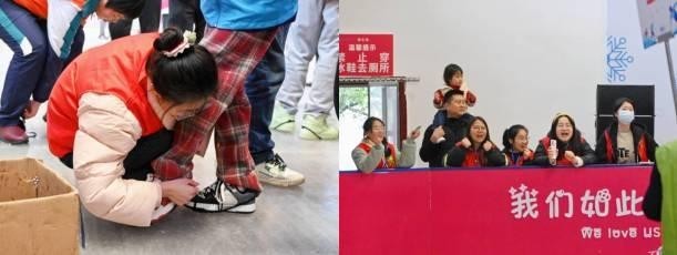 活动过程中,志愿者们位于馆内各处地点,细心帮助运动员穿戴、调整运动装备,为运动员们能够顺利参加比赛提供保障,此外,志愿者们在场内为运动员们加油打气,鼓励运动员积极克服困难、勇敢面对挑战,引导运动员们坚定前行,树立自强不息的新运动风尚。