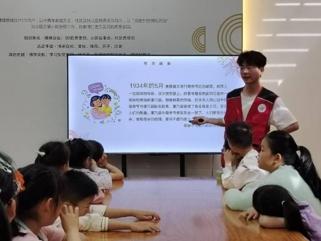 在活动正式开始前,志愿者们通过精心制作的PPT,向参与活动的小朋友们详细介绍了母亲节的由来和历史意义,通过志愿者们的生动讲解,小朋友们了解到国际上将每年5月的第二个星期天作为法定的母亲节,在这一天,人们会送给母亲一些小礼物。而康乃馨被选中为献给母亲的花正是因为1934年的5月,美国首次发行母亲节纪念邮票,邮票上一位慈祥的母亲,双手放在膝上,欣喜地看着前面的花瓶中一束鲜艳美丽的康乃馨。随着邮票的传播,在许多人的心目中把母亲节与康乃馨联系起来,康乃馨便成了象征母爱之花。