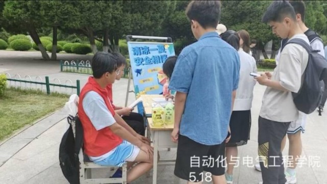 春日初夏,夏阳初长。随着温度不断攀升,我们迎来了夏季,炎热的天气和户外活动的增多,增加了许多安全隐患,因此夏日安全问题不容忽视。为了使同学们在享受夏日时光的同时能够更好的保护自身安全,5月18日,自动化与电气工程学院青年志愿者协会在逸夫图书馆门前广场举办了主题为“清凉一夏,安全相伴”的知识问答活动。