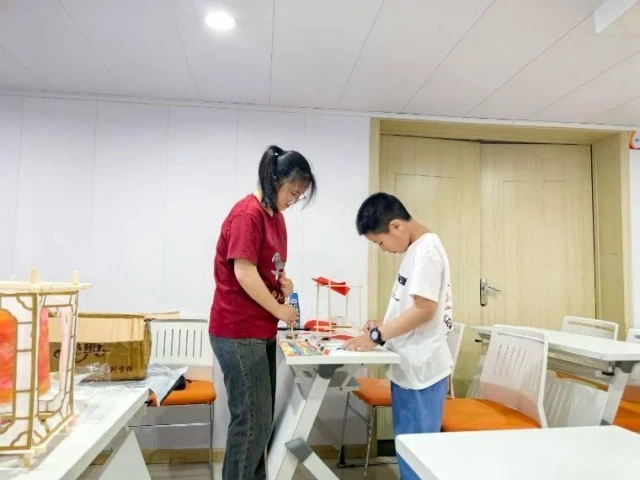 在实践环节,苗老师引导学生思考如何优化走马灯的制作过程,发挥想象力绘制自己的走马灯,学生互帮互助,互相学习,共同制作了精美的走马灯。