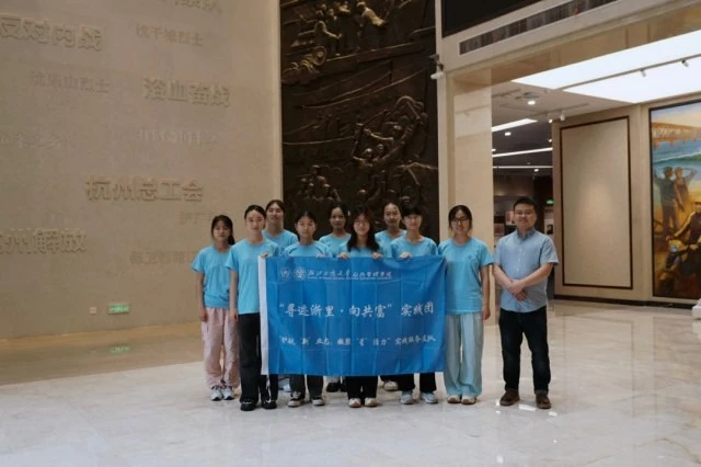 图为实践团在杭州工人文化宫大厅合影杭州市工人文化宫位于杭州市上城区仁和路,作为杭州工运历史的见证者,它记录了从新民主主义时期到中国特色社会主义各个历史时期杭州工人阶级所取得的辉煌成就。随着参观的不断深入,实践团的成员们了解到工人文化宫不仅是工人阶级文化生活的聚集地,更是他们精神文化的传承之所。