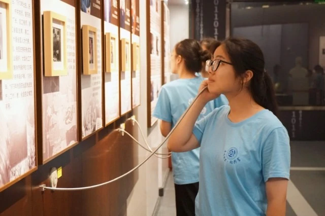 图为实践团成员倾听优秀工人录音成员们在互动体验区亲身体验工人的日常工作和手工艺制作。在体验中成员们感悟到工人阶级的坚韧品格和不屈精神。参观完工人文化宫后,实践团成员还在留言区写下了自己的建议,希望切实为文化馆的发展建言献策贡献绵力。“心心在一艺,其艺必工;心心在一职,其职必举。”实践团成员在实地走访参观中感受‘匠心’,体悟工匠精神,未来相信会有更多青年做未至之境的探索者、做繁华盛世的见证者、做求实鼎新精神的践行者,继续传承发扬工匠‘魂’。