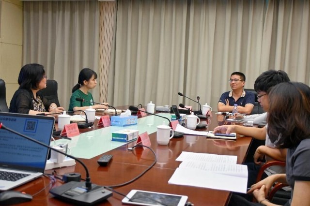 图为苏玉萍副主任与高新区河长办工作人员交谈。中国青年通讯员 吴琼瑶 摄