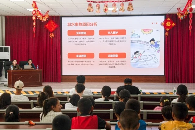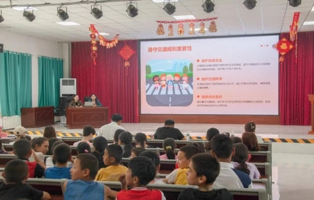 在讲座中“胡杨学子推普,助力乡村振兴”团队成员针对交通安全,通过案例详细讲解了如何正确过马路、识别交通标识等重要知识;在防溺水环节,强调了水域的潜在危险及自救方法;对于防诈骗,剖析了各种常见诈骗手段及防范技巧;消防安全方面,则现场演示了灭火器的使用及火灾逃生要点。丰富的内容和生动的讲解,让青少年们对安全问题有了更深刻的认识和理解。