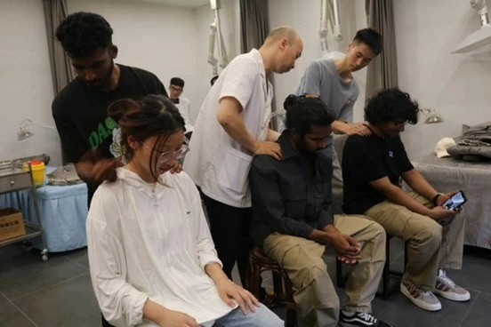 实践体验环节:传统推拿体验随后,我和其他留学生们有幸首次体验了中医推拿的神奇魅力。在专业中医师的悉心指导下,我们学习了基本的推拿技巧,包括点压、揉捏、拍打等。这些手法不仅能够缓解肌肉的疼痛,还能改善血液循环,让我们对中医的神奇功效有了初步的认识。我亲身感受到了推拿带来的即时效果,原本紧绷的肌肉在中医师的手法下逐渐放松,身体的不适感也随之消散。更让我惊讶的是,这种非药物疗法不仅缓解了身体上的不适,还让我体验到了一种心灵上的放松和疗愈,仿佛与世隔绝,所有的烦恼和压力都暂时被抛诸脑后。通过这次体验,我深刻地认识到中医治疗不仅仅关注症状的缓解,更注重身心的整体健康。这种以调和身体和心灵为出发点的治疗理念,让我对中医产生了浓厚的兴趣。我和留学生们一样,对中医推拿的疗效赞不绝口。他们纷纷表示,希望将这种温和而有效的治疗方式带回自己的国家,让更多的人了解并体验中医的智慧。我相信,中医推拿不仅能够帮助人们缓解身体上的疼痛,更能够为人们带来心灵上的慰藉和力量。