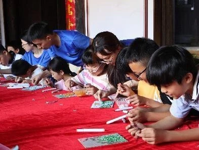 7 月 6 日,“童心筑梦·文脉赓续团” 于抚州市临川区下聂村携留守儿童开展团体辅导、纸浆画与锤草印花活动。在这个充满爱的空间里,每一抹色彩都承载着希望,每一次敲打都传递着关怀,纸浆画与锤草印花的古朴,不仅激发孩子们对于非遗的了解,更搭建起了他们心灵的桥梁,爱与陪伴在每一次创作中悄然生长!