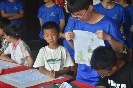(图为实践队在进行锤草印画教学体验课,大学生网报通讯员王晓文摄)