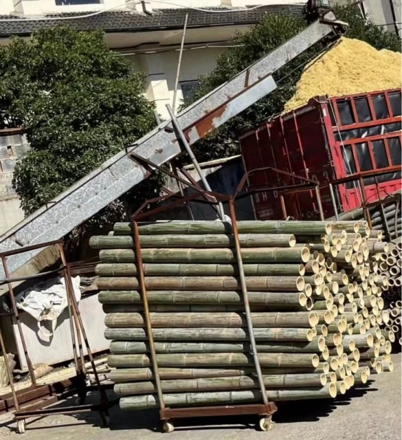 图为已捆绑好的竹圈。大学生网报通讯员    许雨梦 摄