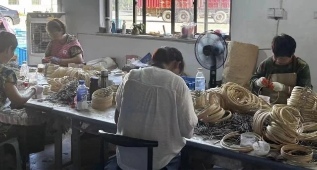 图为工厂员工制作竹圈。大学生网报通讯员 张忆琳 摄