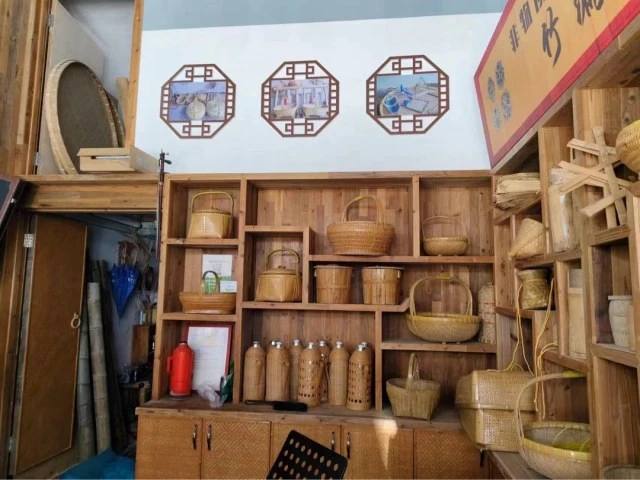 图为竹编手艺人的作品架。大学生网报通讯员 何菲 摄