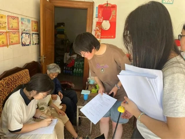 图为队员分发问卷。大学生网报通讯员 许雨梦 摄