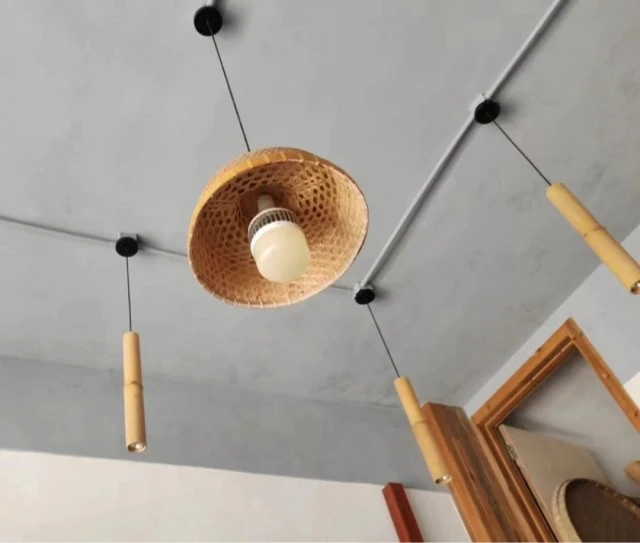 图为竹编手艺人工作室的竹编吊灯。大学生网报通讯员    何菲 摄