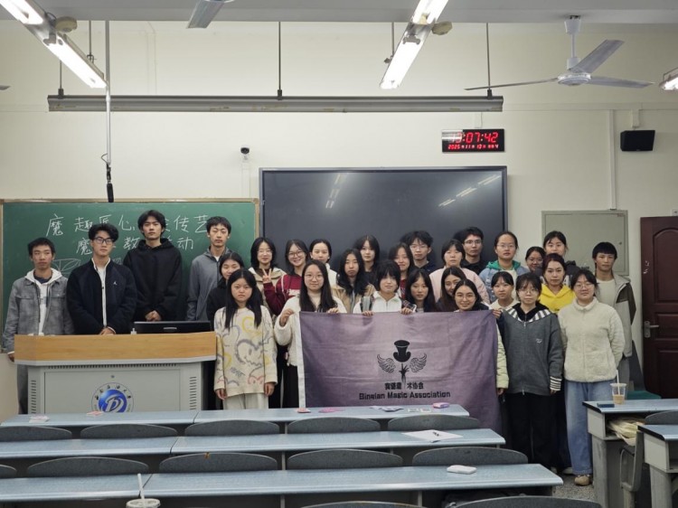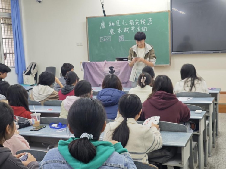 “万树无多叶,千花试一枝。”正值初冬时节,校园褪去了秋的寂寥,多了几分沉淀的静谧。为了丰富校园文化氛围,激发同学们对学习魔术的兴趣,传承魔术中的匠心精神,2025年11月13日,宾谦魔术协会于博学楼B104为大家带来了“魔趣匠心,指尖传艺”魔术教学活动,以魔术为载体传递了“专注打磨,动手实践”的匠心精神。
