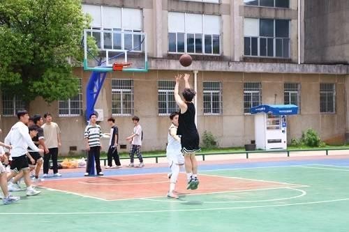 比赛开始前,各队球员们在场上做着准备活动,讨论本队的策略,相互提醒注意事项。各部门未参赛人员在场边作为拉拉队员将为球员们加油打气,整个篮球场充满了紧张的气氛。尽管天气炎热,队员们还是热情高涨。随着一声哨响,各队球员们皆全神贯注地投入比赛之中,全力以赴,或积极进攻,或谨慎防守。他们的运球、传球、投篮等一系列动作果断潇洒,引得周围的学生驻足,为他们助威喝彩。