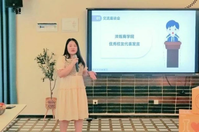 经过前期联络,淬炼商学院新、老校友们齐聚一堂。座谈会上,2018级优秀校友李艾星学姐作为代表发言,对于自己从移通的一名学子,转变成移通的校友而感慨万分,并希望校友会变得更好,也希望之后能亲眼见证校友会成长的点点滴滴。随后,刘薇唯副院长也对校友们心系母校,回归母校表示欢迎,并对即将毕业的2024届新校友作出了寄语,希望校友们前途似锦,常回家看看。