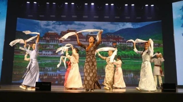 传统民间舞蹈《岗巴拉姆》的表演者们起身呼喊、跳跃、转动,充满激情,傣族舞《花腰傣》的舞者们舞姿婀娜,动作干净利落。《西子湖·初妆》中舞者柔美的动作、曼妙的姿态和精致的服饰承载了大学生的蓬勃生机和热情洋溢的面貌。