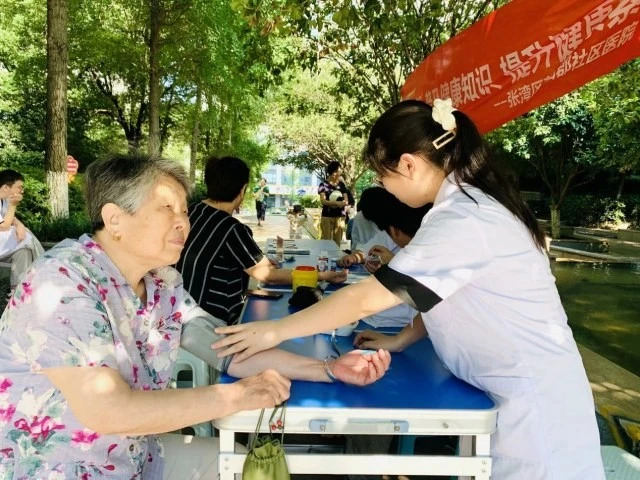 图为实践队员在社区为老年人义诊。大学生网报通讯员 朱席丹 摄