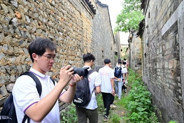在志愿者的带领下,实践团成员们沿着村里的巷道继续参观学习。这些巷道或高低不平,或平坦无洼,大多数笔直幽深,宛如一条条通往历史的隧道。村内有部分道路是由碎瓦片叠铺而成,别有一番韵味。走在这些古巷道上,仿佛能听到历史的回声,感受到岁月的沉淀。