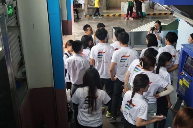图为调研成员参观运行中的机器洗涤被单 (大学生网报通讯员 罗一馨 摄)