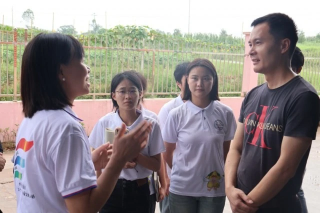 图为指导老师秦晓慧与总经理对于企业盈利模式进行交流 (大学生网报通讯员 罗一馨 摄)