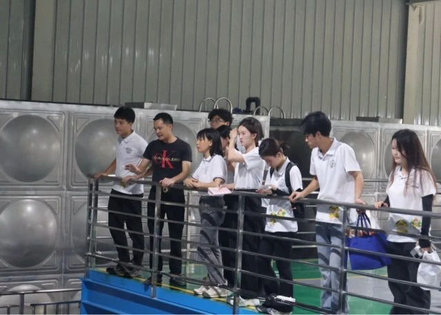 图为总经理为同学们介绍自动化设备使用流程 (大学生网报通讯员 罗一馨 摄)