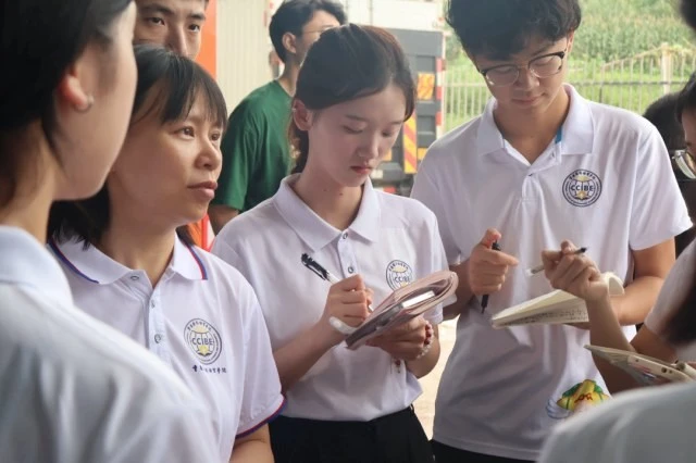 图为调研成员执笔记录刘先生讲话(大学生网报通讯员 罗一馨 摄)