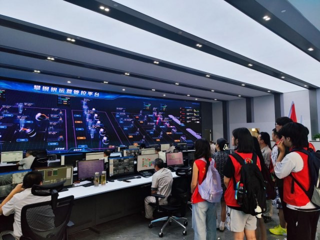 接着,施主任为志愿者展示了智能化炼钢产业的工艺流程。现如今攀钢已建成了完整的智能化生产体系,工作人员可以在管控中心实时无死角监控,了解各设备的运行状态,及时对数据异常的设备进行处理。整条产业正逐渐向数字化、智能化方向靠拢。