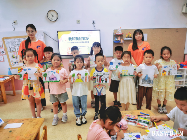 7月26日,实践团走进邹区中心幼儿园,以“我和我的家乡”为主题开展课程,引领30名幼儿穿梭于小岗村的历史长廊,聆听那段小岗人携手并肩、建设家园的传奇故事。最后实践团带着小朋友们用画笔描绘自己的心目中的家乡,鼓励小朋友们要学习小岗人民的奋斗精神,共同建设美丽家乡。画笔下,一幅幅色彩斑斓的家乡图景跃然纸上,不仅绘出了孩子们心中的美好愿景,更深刻烙印下了“小岗精神”的坚韧与奉献。
