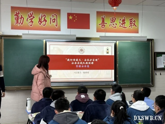 在今天的宣讲活动中,队员赵欣堉首先带领各位师生回顾了山东大学“牢记国家安全,践行教育强国”大学生寒假社会实践国家安全专项授旗仪式上学校领导的讲话精神,强调了资源安全的重要性和个人在其中的责任与使命。随后,她又通过多媒体展示、案例分析和互动问答等多种形式,深入浅出地讲解了资源安全的定义、重要性以及青少年在维护资源安全中的具体行动,结合实际生活中的案例,详细介绍了如何识别和防范各种危害资源安全的行为,如资源浪费、环境污染等,使同学们对资源安全有了更直观、更深刻的认识。