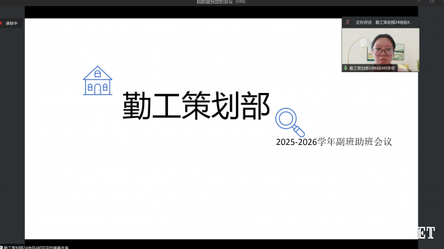 为帮助助班、副班明确申请助学贷款和贫困生认定等工作的具体要求、贫困生认定工作细节和生源地贷款政策相关内容,进而帮助有需要的新生。2025年8月17日14:30-15:30,地理科学学院勤工与心康中心以企业微信会议形式顺利召开2025年助班、副班线上培训会议。22、23、24级副班,25级的助班和勤工与心康中心全体干部参会。