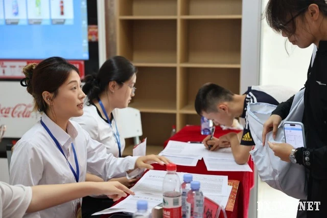 线上预报到系统助力新生提前完成个人信息采集、军训服尺码登记、行李订购等事宜,极大提高了报到效率。迎新现场大屏幕实时展播迎新数据,各部门据此灵活调整工作安排,确保迎新工作有条不紊。