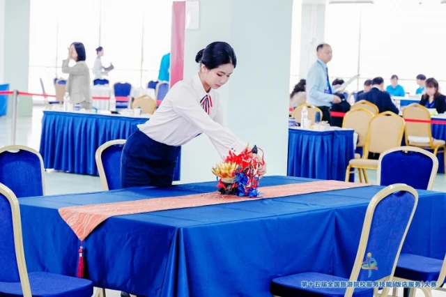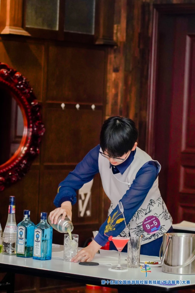 “沉下来”练:成长比成绩更重要从校赛选拔到国赛冲刺,四个月的备赛历程是学生蜕变的见证。肖玲珑为调制一款兼具风味与视觉感的原创鸡尾酒,多次尝试,不断修改;谢汶珊为精准掌握西餐摆台毫米级间距,用尺子反复测量上百次;团队甚至自发组织“跨赛项互助小组”,中餐选手帮西餐选手设计餐巾折花,调酒选手为客房选手策划欢迎饮品。“比赛让我们跳出自己的‘舒适圈’,看到了更广阔的行业世界。”谢汶珊感慨道。