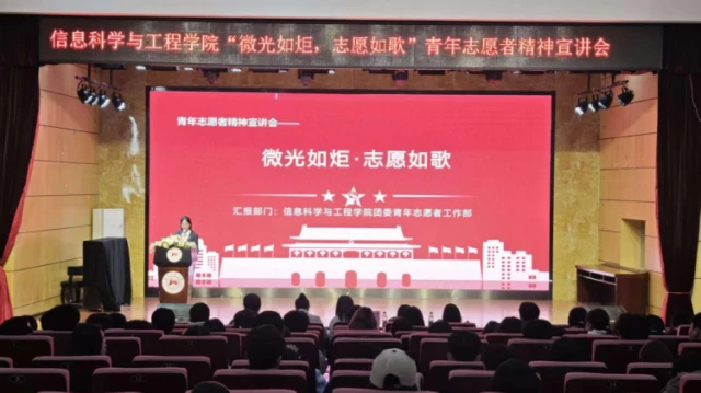 (通讯员 齐梦茹)为弘扬志愿精神,培育青年学生的社会责任感与奉献意识,我院于12月11日在树达楼报告厅开展“微光如炬,志愿如歌”志愿者精神宣讲会。此次活动由我院院团委青年志愿者工作部主办,优秀志愿者代表参与演讲。