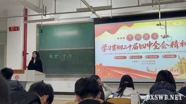 为推动党的二十届四中全会精神入脑入心,团支部开展专题学习活动。活动中,团支部骨干通过PPT讲解、视频展播等形式,系统解读了党的二十届四中全会关于国民经济和社会发展第十五五年规划的重要部署,聚焦“坚定信心、保持定力、锐意进取、开拓创新”的要求,结合计算机专业特色探讨了青年学子在数字中国建设中的责任与使命。互动环节里,同学们结合专业学习实际分享感悟,形成了“学精神、强本领、勇担当”的思想共识。