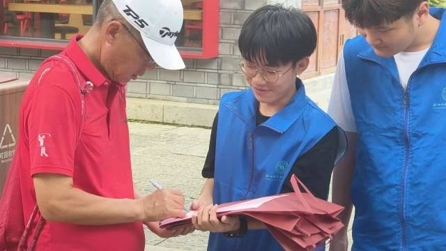 图为实践队员邀请群众在反邪教承诺书上签字。大学生网报通讯员 朱灵杰 供图