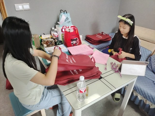 图为实践队队员在整理和分装反邪教宣传物品。大学生网报通讯员 朱灵杰 供图