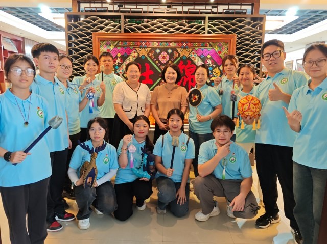 大学生网报百色7月13日讯(通讯员 龙桂云 张鹤铧)7月8日至7月9日,广西卫生职业技术学院“青衿本草心,‘非遗’岐黄行”中华文化传承团走进广西百色靖西市,来到旧州古城和靖西壮锦厂,亲身体验非遗绣球制作和壮锦织造技艺,感受千年非遗的魅力,将非遗文化与中医药文化有机结合,和合共生助推文化传承发展。