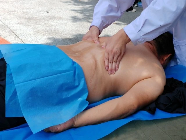 图为实践队员为村民按摩理疗。大学生网报通讯员 廖胡洋供图。