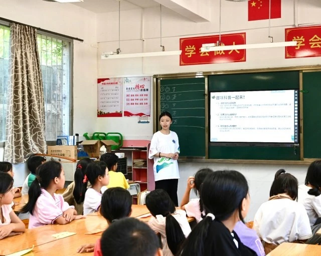 图为科普课上支教组队员为小朋友科普自然科学常识(大学生网报通讯员 刘嘉佳供图)