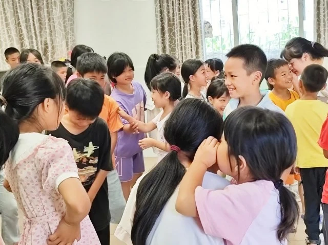 图为语言小游戏上支教组队员和小朋友们开展语言表达游戏(大学生网报通讯员 钟梦婷供图)