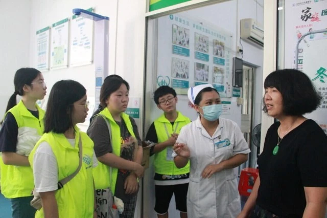 座谈会后,陈主任带领慢语一行人去到慢性病服务工作站,进一步地给队员们详细地说明了挂号、测量、诊断、治疗各个环节以及各个环节的日常工作状态等内容。在此期间,队员们看到了患者对于排除疾病、恢复健康的积极,以及医者对于救治患者的坚定决心,医患携手、统一战线、攻克难关,已成日常之态。同时,陈主任也指出了其中一些较为重要的、且队员们能够协助的工作,并提醒队员们务必认真学习此类必要知识,熟悉相关器械的操作。