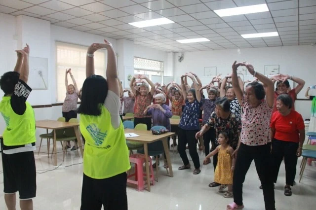 图为慢语志愿服务队队员在社区和长辈们做“控糖操”