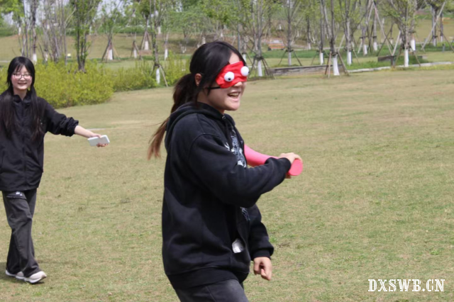 盲人抓“鸡”游戏更是将活动推向了高潮。每组选出一名“盲人”,其余八人作为“鸡”,“盲人”通过尖叫鸡的叫声判断“鸡”的位置,用泡沫棒轻轻触碰“鸡”即算“抓住”。游戏中,“鸡”们在场地内灵活躲避,“盲人”则努力捕捉目标,现场充满了欢声笑语。最终,根据规定时间内抓住“鸡”的数量,决出了胜负。