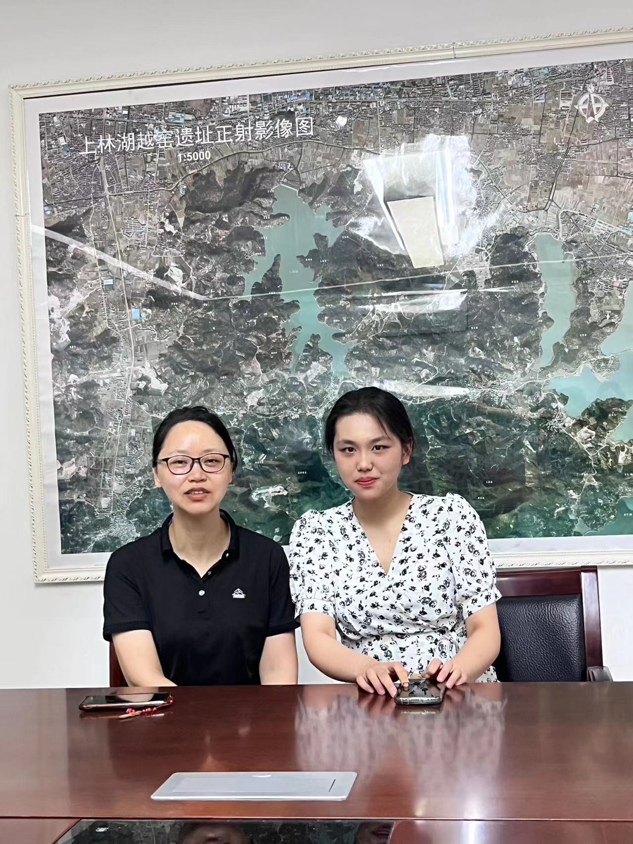 参观结束后,小队对博物馆的王馆长进行了访谈,在与王馆长的交谈之中,成员了解到上林湖越窑青瓷博物馆设立的初衷就是为了满足人民日益增长的精神文化需求、为了更好的传承青瓷文化,博物馆会定期开展比较大型的青瓷文化活动节;通过炼泥、做胚、刻画花纹三个步骤来向小朋友们普及青瓷制作工艺,与中国传统文化二十四节气结合,向小朋友们宣传中国文化,提升小朋友们的文化自信;通过与科技馆合作,在自然环境秀美的的遗址公园内,制造与大自然亲密接触的机会,充分体现了青瓷所蕴含的自然之美。
