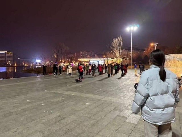 晚上八点钟,我再次到达界湖公园。然而夜晚的界湖公园,却是和白天有着截然不同的风格,夜晚的界湖公园要比白天热闹,到处充满了烟火气息。环湖步道上人流量会更大一些,当然最受欢迎的还是跳广场舞的活动,跟随节奏一起摇摆,在寒冷的冬天让身体重新燃起来。如果是夏天,有时候还会有一些大型的表演节目,人们更是会将舞台围得水泄不通,台上的演员活力四射,台下的观众同样热情澎湃,整个演出不可谓不沸腾。这些活动可以充分调动居民的生活热情以及缩短人与人之间的社交距离,更好建设共同家园。
