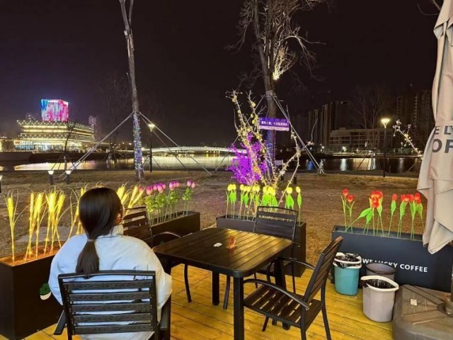 最让我印象深刻的是界湖公园也有许多供游客打卡的网红路牌,为界湖公园增添了浪漫气息。同时还配有被点缀了五颜六色小彩灯的小树苗,湖边的店铺外摆有很多桌椅供人们歇息,并在周围“种”上了漂亮的小花朵,让在这歇息的人们同样可以欣赏到美景,我认为这样的小细节不仅可以给游客提供愉悦感,而且足以见得建设公园的用心。