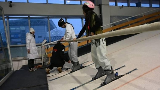 实践的后半程,我们首先来到中关村(延庆)体育科技前沿技术创新中心,见证科技与体育的绝美交融。园区集体育装备、科学训练、运动监测与康复、电子竞技、赛事裁判、赛事直播、体育服务等为一体,形成体育科技产业综合体,布局完善但规模偏小。对此,2022级计算机技术专业硕士生杨卓越想到,可以立足延庆发展冰雪体育的背景,吸引运动专业装备器材板块行业龙头企业入驻,打造冰雪运动相关原创自主品牌,提高创新度和竞争力。随后我们在梦起源滑冰场和和北京市冰上项目训练基地,观赏短道速滑小选手们训练的优雅身姿,亲身试验了在室内滑雪训练机上模拟滑雪的感受,大家都真切地体会到冰雪运动的乐趣与魅力。