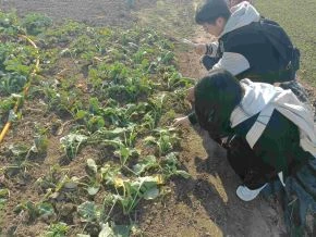 1月15日下午,实践团跟随村民走过蜿蜒盘旋的乡路,踏入毛豆田地,和农民面对面交流。在交谈中我们了解到,位于王家坝镇郑台孜村的果蔬专业合作社种植毛豆已有几年光阴,今年春种毛豆约2000亩,成员们看着基地里毛豆苗长势茂盛,它们密密麻麻的叶子下面,串串青绿的豆荚挂在枝蔓上,一片丰收的喜人景象,大家心里十分高兴,一齐投入到劳动实践当中。“一天最多采收400斤,收入200多元,离家里近而且工作自由,一个月下来可以赚到好几千元,又不耽误家里的农活。”当地村民告诉团队成员,每年毛豆种植、采收都可以获得务工的机会,给他们的家庭带来不少收入。濛洼蓄洪区依托淮河和低洼地自然优势,因地制宜,走适应性农业发展道路,挖掘特色、培育特色、创造特色,让毛豆变“金豆”,带动农民增收致富。在亲自劳动实践过后,实践团成员们积累了劳作经验,亦深刻理解了乡村振兴的实际意义。